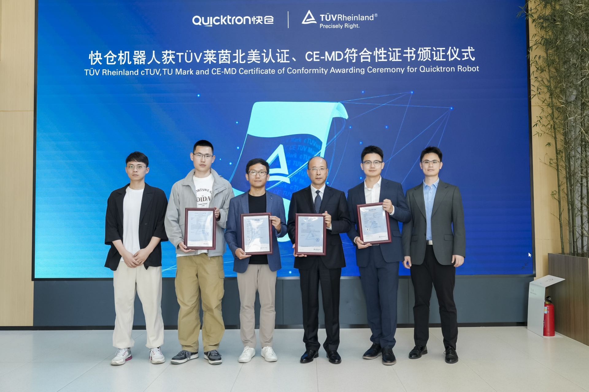 On May 12, Quicktron Robotics held a certification ceremony with TÜV Rheinland Greater China, a globally recognized independent testing, inspection, and certification body. Several of Quicktron’s flagship products have officially passed TÜV Rheinland’s rigorous assessments, earning both the North America Certification and the CE-MD Declaration of Conformity.