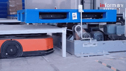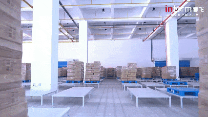 - Standard Product Automated Inbound: The stacker crane transports goods to the connection point, and the M100 receives the task to precisely transport the pallet to the designated storage area.