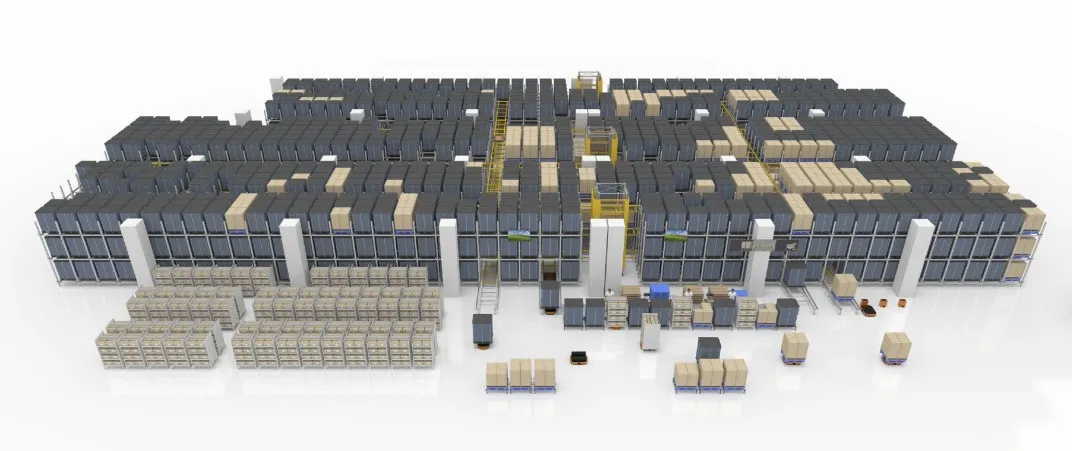 From Simulation to Reality: Redefining Warehouse Efficiency During the initial planning phase of the project, the Quicktron team conducted in-depth on site investigations of the client's conditions, precisely calculated equipment requirements, and designed a cross-zone storage solution for irregular architectural layouts based on the client's actual scenarios. Due to the influence of beams between columns, a three-story (three-dimensional warehouse area) with varying layouts was designed within the warehouse, where the clear height of the beams was 4.9m.